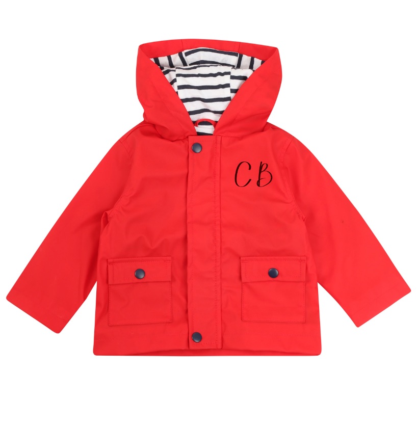 For the puddle jumpers, try the rain jacket with charming striped single Jersey lining and available in bright colours.